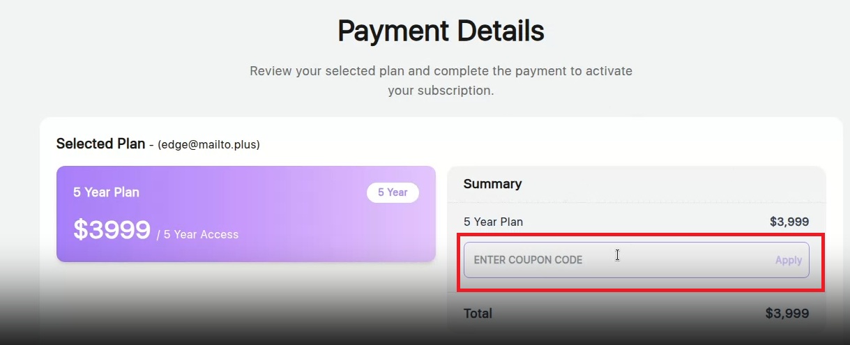 - In the coupon code section, enter the code TPPLEGACY and the click "Apply"