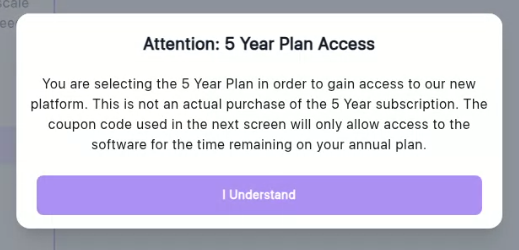 Important Note: You will have access to the 5-Year plan only through the end of your annual subscription, this is not actually a purchase of the 5-Year use of the software.
