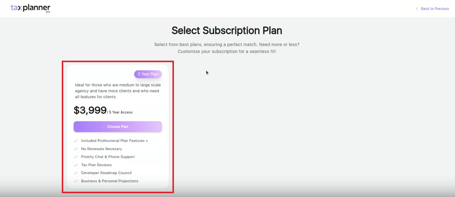 - On that screen select the 5-Year Plan from the subscription options.